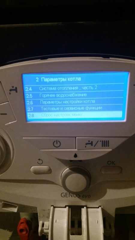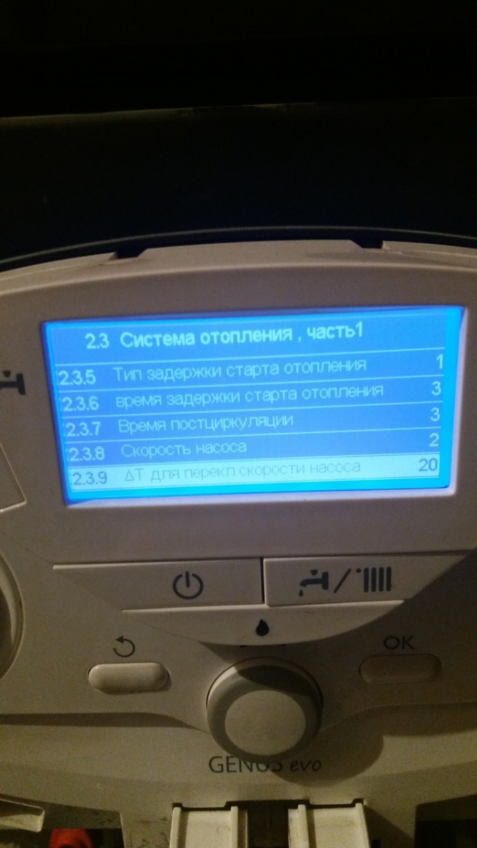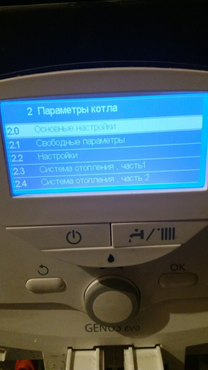 Теперь мы вошли в "параметры котла", крутим колесико на 2.3 "Система отопления, часть 1" и нажимаем "ОК".