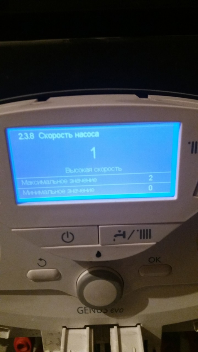Видим, что мы выбрали постоянную высокую скорость насоса, нажимаем "ОК" и выходим с меню кнопкой выхода. Данная операция по замене параметров должна выполняться при необходимости,а также при плохой циркуляции в системе.