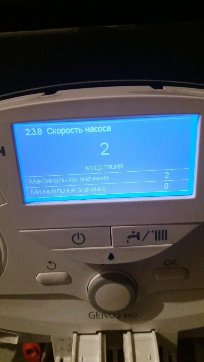 Видим, что стоит режим модуляции насоса, в данном режиме котел сам меняет скорость, ставим цифру "1"